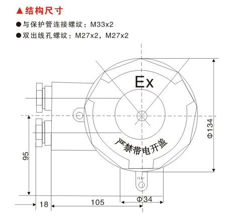 雙出線孔螺紋:M27x2,M27x2