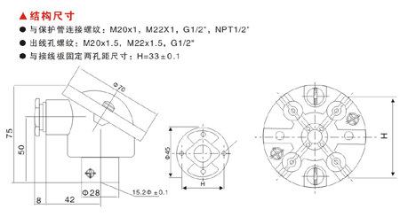 與保護管連接螺紋: M20x1,M22x1, G1/2", NPT1/2"
