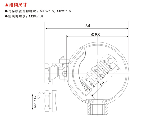 與保護管連接螺紋:M20x1.5,M22x1.5