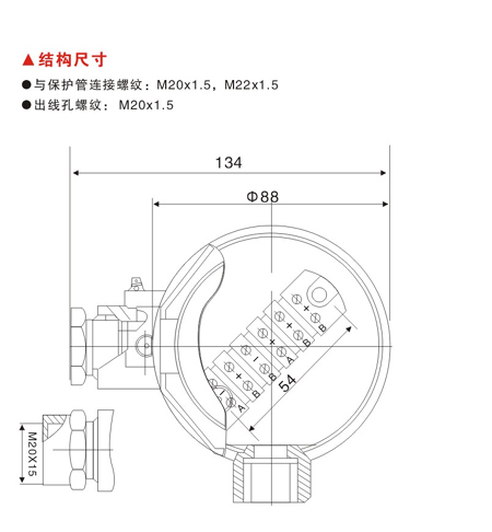 與保護(hù)管連接螺紋:M20x1.5,M22x1.5
