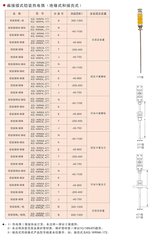扁接插式鎧裝熱電偶