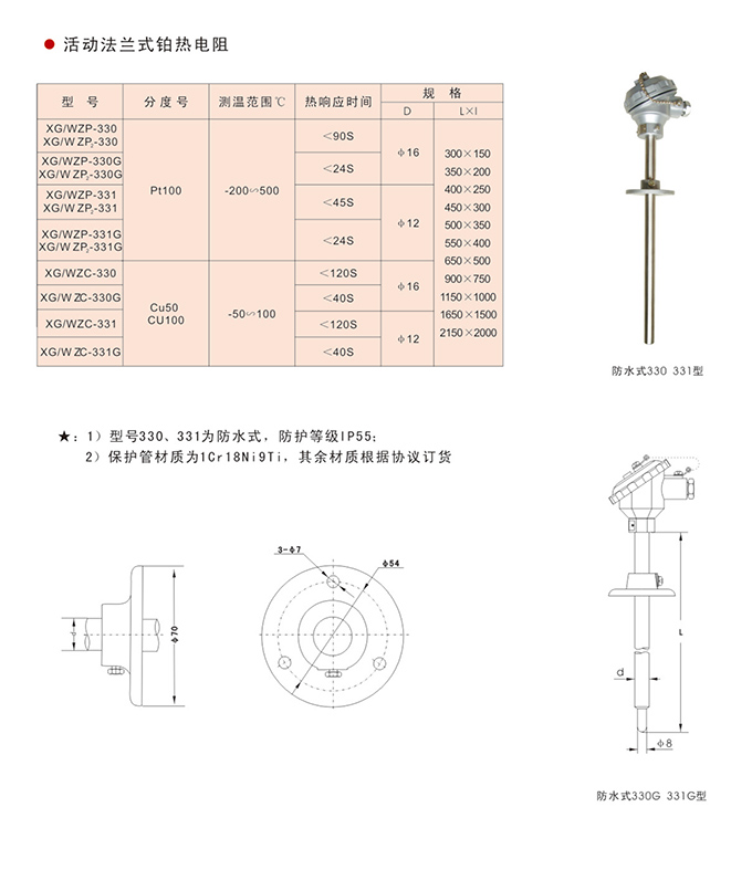 2)保護管材質為1Cr18Ni9Ti,其余材質根據(jù)協(xié)議訂貨。