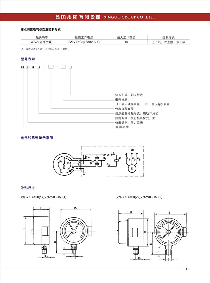 磁助電接點壓力表由滿量系統,指示裝置,促助電接點裝置,外殼,調節裝置及接線盒等組成。當被滿壓力作用于彈黃管時,其末端產生相應的彈性變形——位移,經傳動機構放大后,由指示裝置在度盤上指示出來。同時指針帶動電接點裝置的活動觸點與設定指針上的觸頭(上限成下限)相接觸的瞬時,致使控制系統中接通或斷開電路,以達到自動控制和發信報警的目的。