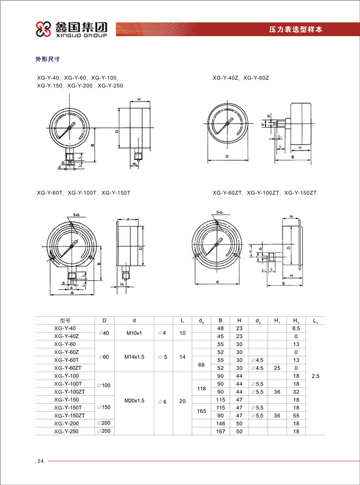 XG-Y系列一般壓力表: